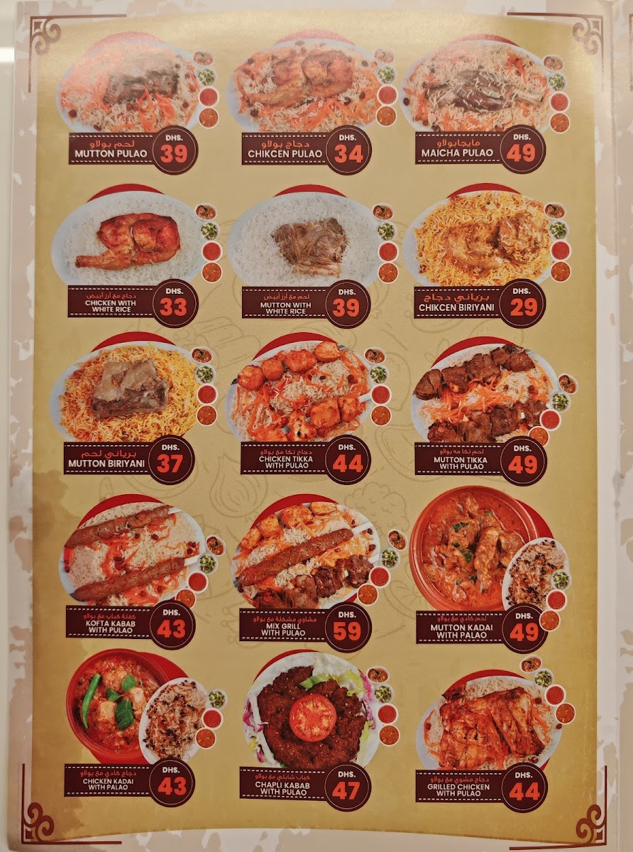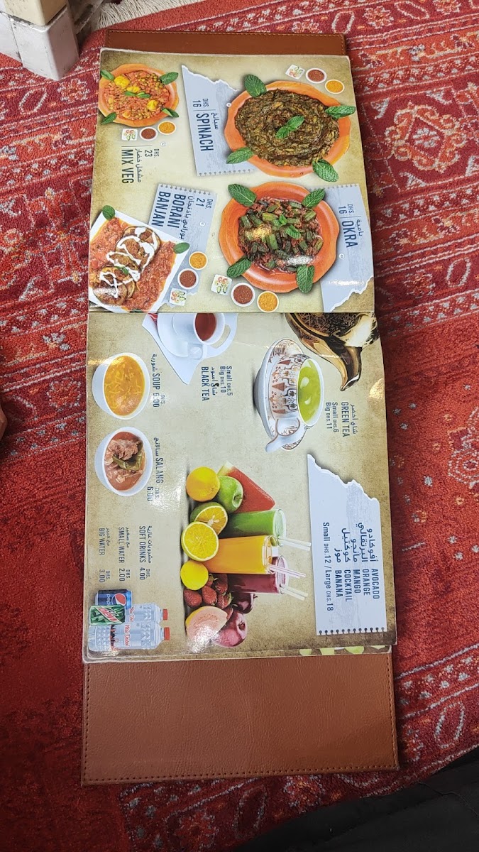The menu caters to a range of tastes from quick orders of kababs and soft drinks to more extensive meals that include rice dishes and multiple courses. It is suitable for lunch or dinner, serving traditional Afghan flavors in a straightforward format.